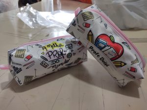 ESTOJO PERSONALIZADO, TAMANHO 19CMX 7CM X 5CM COMPRIMENTO X LARGURA X ALTURA APROXIMADAMENTE.